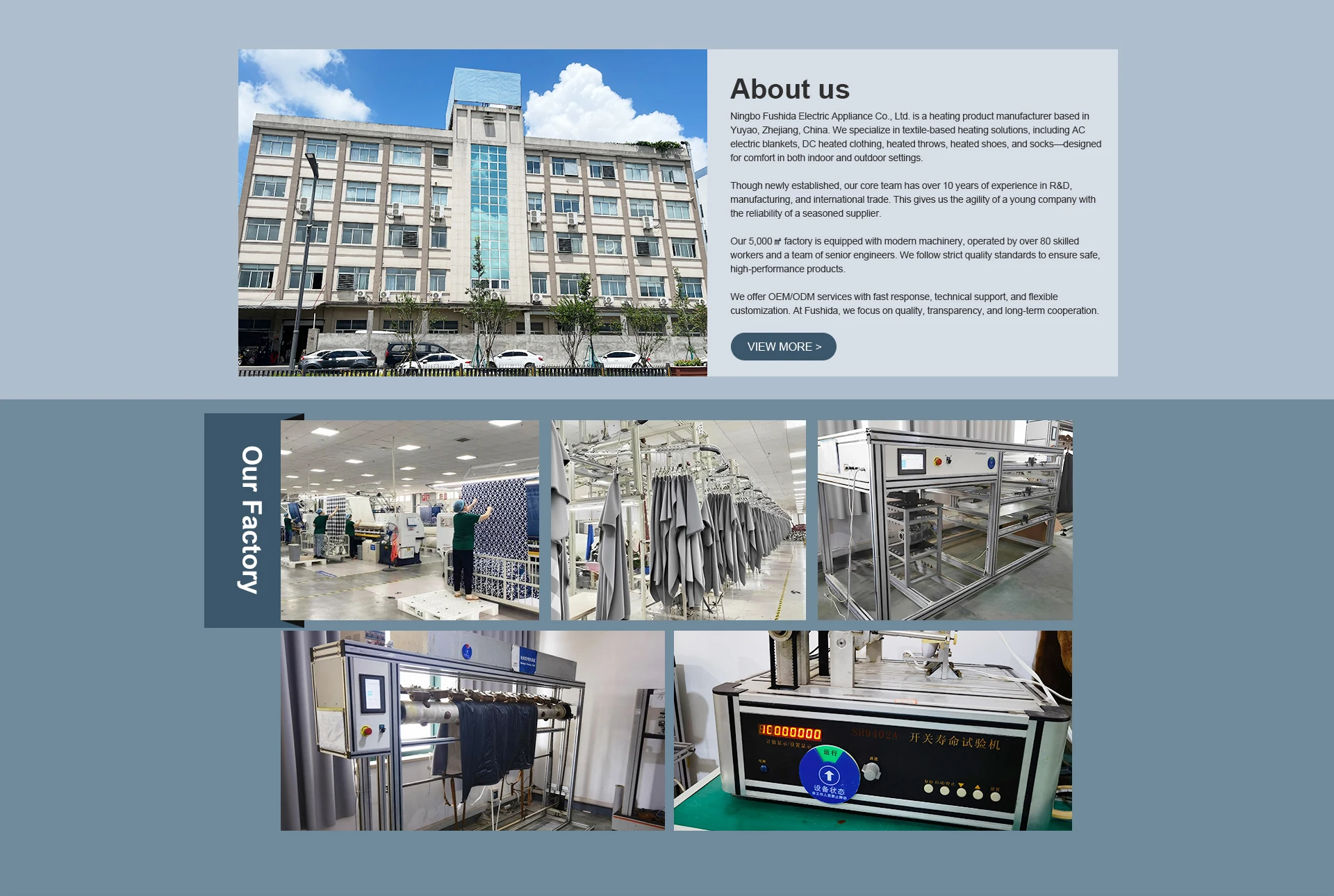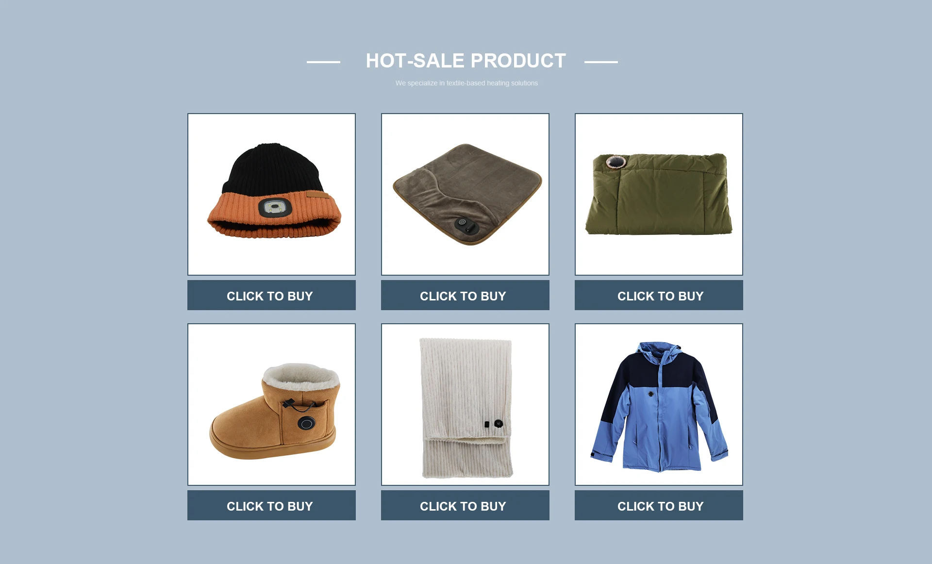 מוצרים עיקרייםשמיכה מחוממת, אפוד מחומם, כובע מחומם, כפפות מחוממות, מחצלת לחיות מחמד